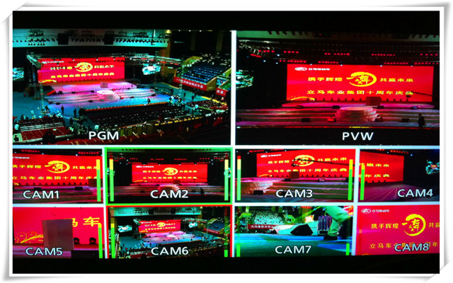 晚上搭了200多平方P4高清屏幕加8路高清訊道直播返看,第一次嘗試用光纖雙向傳輸音頻到音控臺(tái),比模擬清楚、方便。
