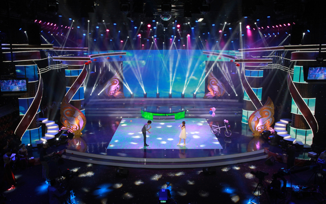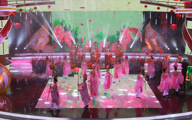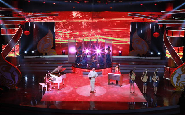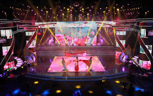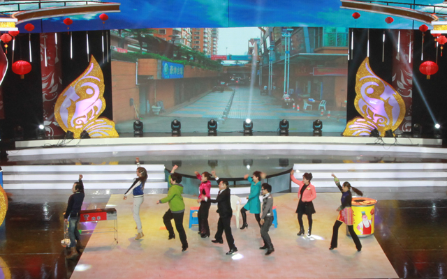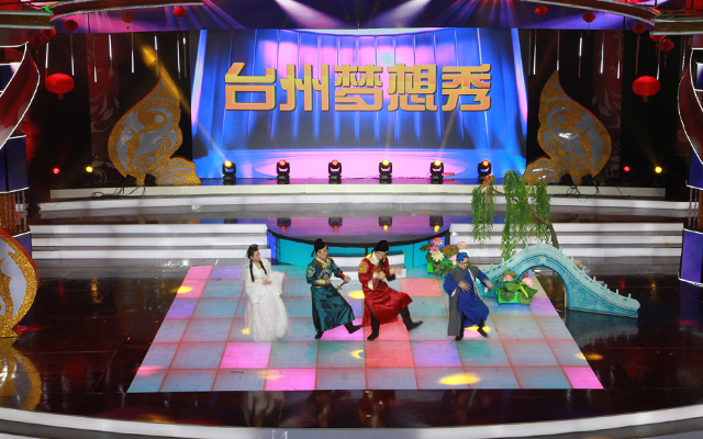 我公司負(fù)責(zé)LED/地坪視頻設(shè)計(jì),現(xiàn)場視頻高清導(dǎo)播。,2013年臺(tái)州春節(jié)聯(lián)歡晚會(huì)首次在演播室鋪設(shè)地坪,首次沒彩排直接錄播,開創(chuàng)了臺(tái)州電視史的先河。