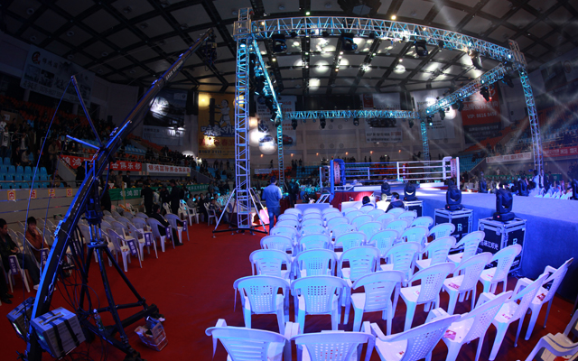 3月31日,河南衛(wèi)視《武林風(fēng)》拳擊賽在溫嶺市體育館拉開決戰(zhàn)。繽紛云集的武術(shù)套路、酣暢淋漓的搏擊場面、源遠(yuǎn)流長的文化底蘊(yùn)、明星大腕的現(xiàn)場助陣,都會(huì)讓您有種置身于決戰(zhàn)之巔的錯(cuò)覺! 我公司負(fù)責(zé)現(xiàn)場LED屏幕設(shè)計(jì)、搭建、導(dǎo)播。以及現(xiàn)場六機(jī)位高清錄播。節(jié)目將在4月13號河南衛(wèi)視武林風(fēng)播出。
