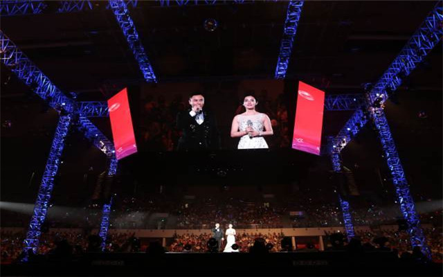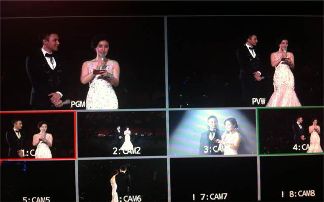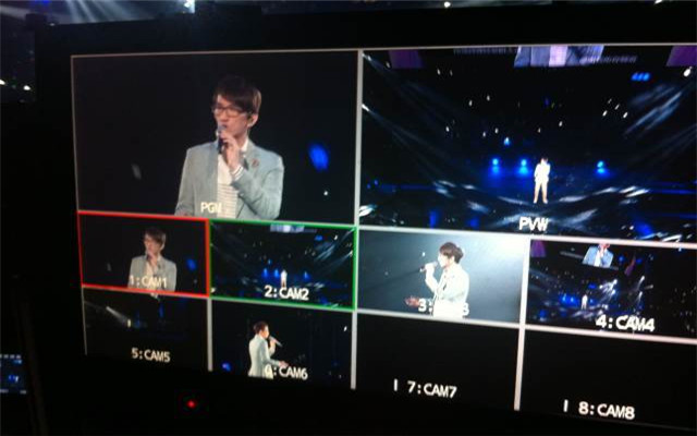 無(wú)錫體育館演唱會(huì)用了吊頂屏幕,舞臺(tái)四面對(duì)著觀眾,現(xiàn)場(chǎng)PGM信號(hào)上傳4個(gè)同步屏幕,林志炫、彭佳慧演出喜歡跟觀眾互動(dòng),跟拍的無(wú)線斯坦尼康。