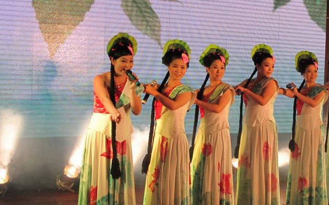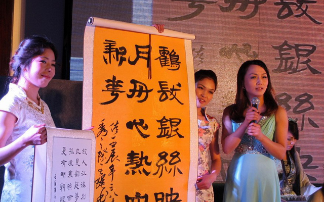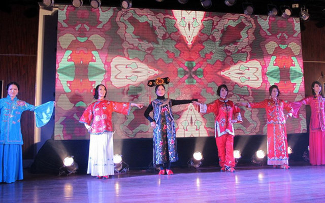 ??女教職工才藝展示,首先在市聯(lián)合藝術(shù)學(xué)校的器樂(lè)小合奏《金蛇狂舞》中拉開序幕,接著是市中心幼兒園24位女教工表演了以《秀》為主題的時(shí)裝表演,有錦園小學(xué)鐘丹卿等9人的歌伴舞《西廂聽(tīng)琴》,然后是大溪四中、溫西中學(xué)、松門三小、市實(shí)驗(yàn)學(xué)校、箬橫鎮(zhèn)中、松門小學(xué)等校女教師表演的書法、國(guó)畫和剪紙,并當(dāng)場(chǎng)向臺(tái)下的領(lǐng)導(dǎo)和觀眾贈(zèng)送自己的作品,許黎野副市長(zhǎng)上臺(tái)接受禮品,并向全市女教工表示節(jié)日祝賀。聯(lián)合藝校、澤國(guó)三中、三星小學(xué)、太平小學(xué)女教師表演的古箏合奏,中間串插著給男同胞做衣服游戲,引得大家哈哈大笑。還有市職技校女教師的獨(dú)舞《翠狐》,大溪小學(xué)、岙環(huán)中學(xué)、松門三小、城北小學(xué)、市職枝校等校的中外歌曲聯(lián)唱,還有市四中、澤國(guó)四中、橫湖小學(xué)、方城小學(xué)的詩(shī)歌朗誦和大溪小學(xué)的《數(shù)蛤蟆》,最后在澤國(guó)中學(xué)、松門三小、市中心幼兒園熱鬧的歌伴舞《愛(ài)我中華》中降下帷幕。與會(huì)領(lǐng)導(dǎo)上臺(tái)向女教職工祝賀演出成功并合影留言。