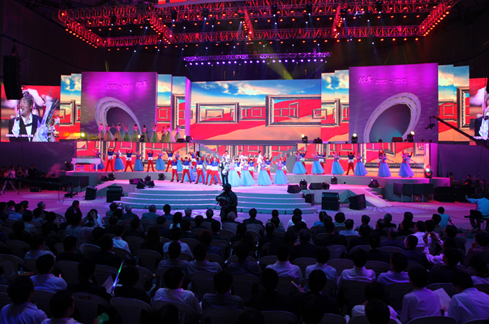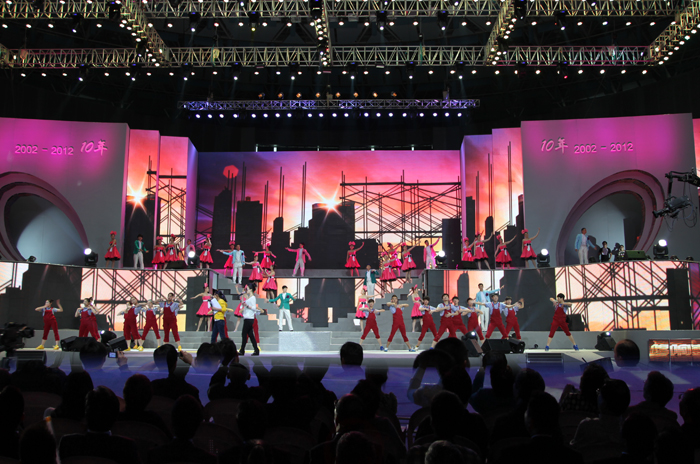 我公司負責LED視頻設(shè)計,現(xiàn)場視頻高清導播。4月26日晚,隨著絢爛的煙花在鄞州市民廣場上空綻放,正在體育館內(nèi)舉行的"唱響鄞州——慶祝鄞州撤縣設(shè)區(qū)十周年主題晚會"進入了高潮,錢江頻道與鄞州區(qū)委宣傳部聯(lián)合承辦的"十年化城,唱響鄞州"系列主題活動取得圓滿成功。。